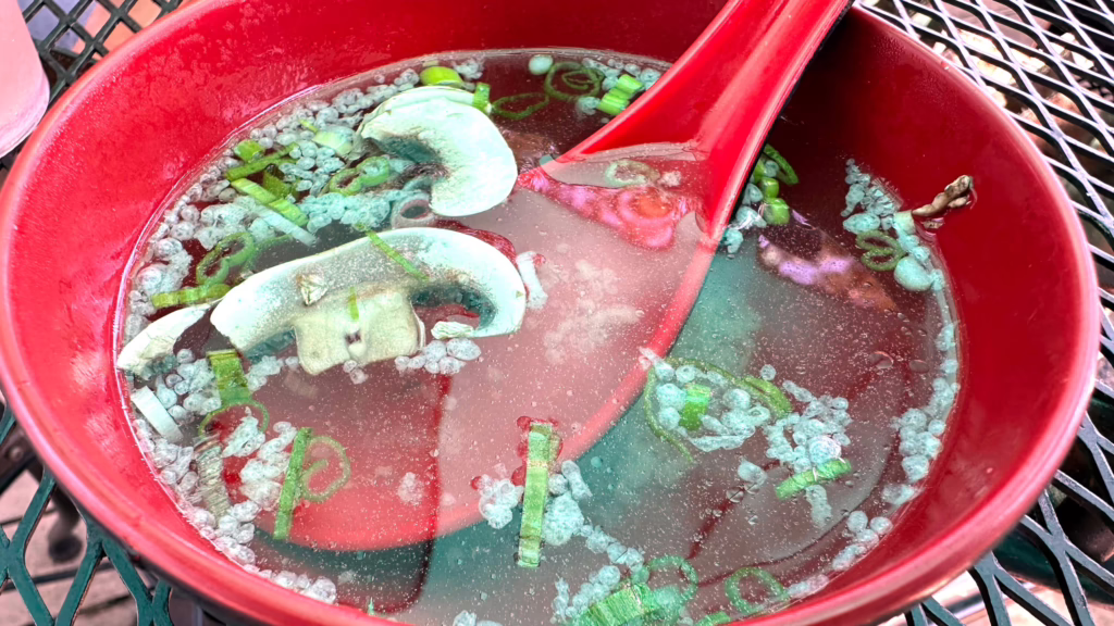In addition, to what we ordered, our lunch also came with a little extra love: a complimentary crab appetizer and the house soup. Everything was delicious, and the portions were just right.