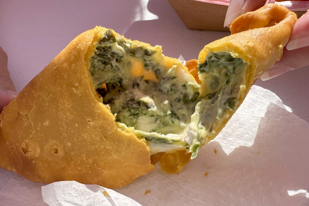 On our visit, the pizza empanada came stuffed with melty cheese and rich tomato flavor, a warm and gooey twist on a familiar classic. Paul’s spinach and cheese empanada was equally indulgent—lush, cheesy, and satisfying in every bite. These aren’t skimpy empanadas either; they’re generously filled and wonderfully portable, perfect for enjoying on the go.