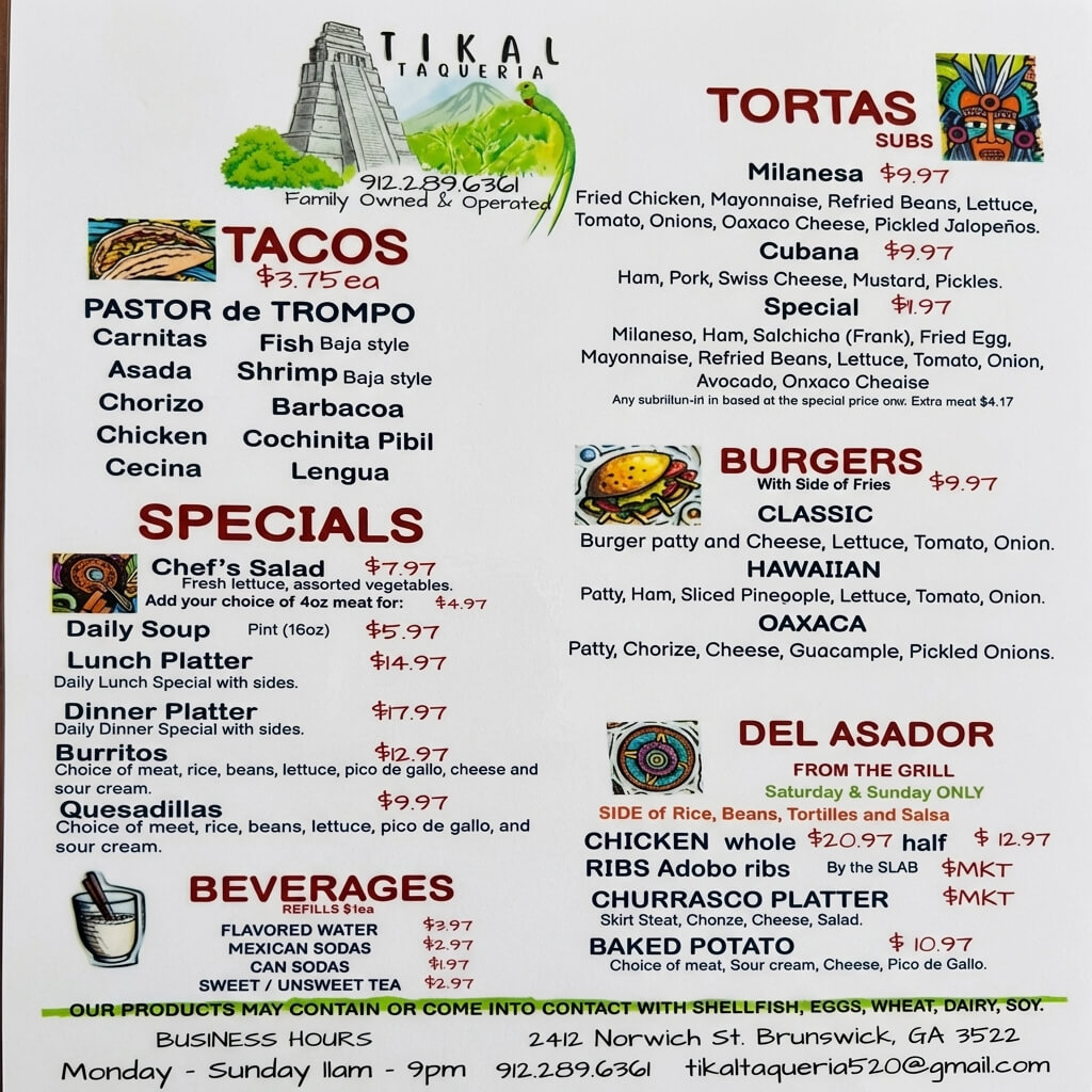 Everything here is so good. Watch our episode below, then go get you some tacos, and tell em’ Brunswick Eats sent you!